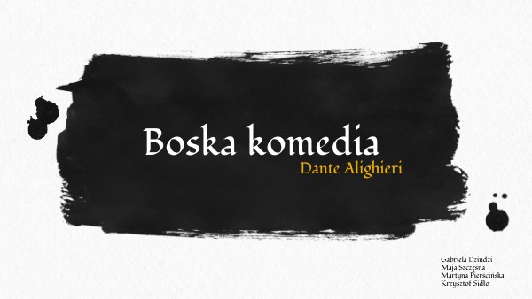 - Bohaterzy: Dante, Wirgiliusz, Beatrycze