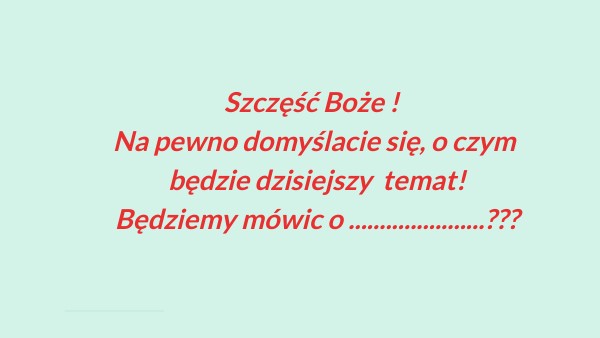 Szczęść Boże ! Na pewno domyślacie się, o czym będzie dzisiejszy temat! Będziemy mówic o ......................???