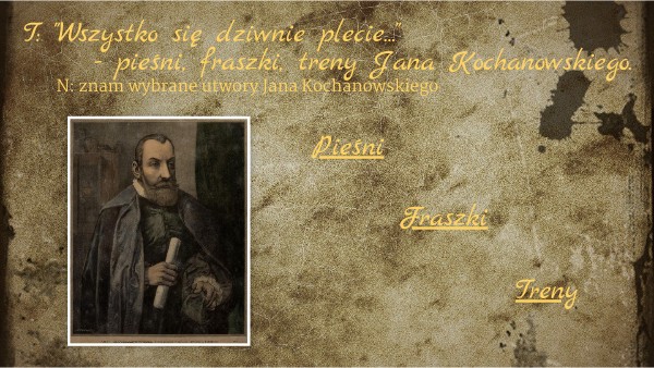 T: "Wszystko się dziwnie plecie..." - pieśni, fraszki, treny Jana Kochanowskiego.