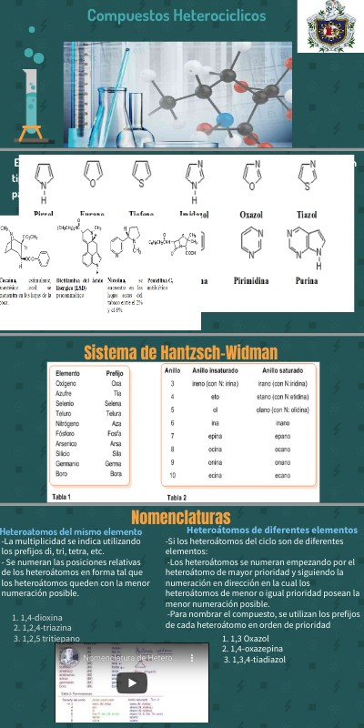 En un compuesto de sustancias que contiene un anillo formado por mas de un tipo de atomo. existen compuestos moniociclicos y biciclicos de gran interes para los quimicos y bioquimicos