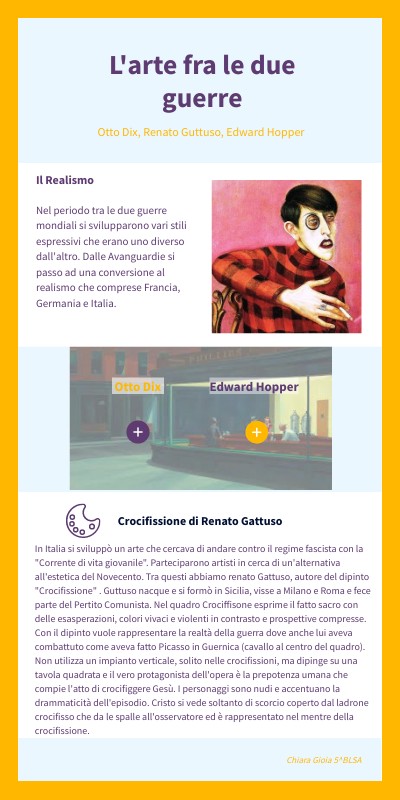 In Italia si sviluppò un arte che cercava di andare contro il regime fascista con la "Corrente di vita giovanile". Parteciparono artisti in cerca di un'alternativa all'estetica del Novecento. Tra questi abbiamo renato Gattuso, autore del dipinto "Crocifissione" . Guttuso nacque e si formò in Sicilia, visse a Milano e Roma e fece parte del Pertito Comunista. Nel quadro Crociffisone esprime il fatto sacro con delle esasperazioni, colori vivaci e violenti in contrasto e prospettive compresse. Con il dipinto vuole rappresentare la realtà della guerra dove anche lui aveva combattuto come aveva fatto Picasso in Guernica (cavallo al centro del quadro). Non utilizza un impianto verticale, solito nelle crocifissioni, ma dipinge su una tavola quadrata e il vero protagonista dell'opera è la prepotenza umana che compie l'atto di crocifiggere Gesù. I personaggi sono nudi e accentuano la drammaticità dell'episodio. Cristo si vede soltanto di scorcio coperto dal ladrone crocifisso che da le spalle all'osservatore ed è rappresentato nel mentre della crocifissione.
