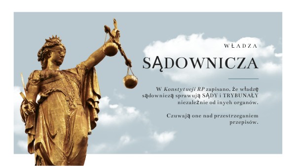 W Konstytucji RP zapisano, że władzę sądowniczą sprawują SĄDY i TRYBUNAŁY niezależnie od inych organów. Czuwają one nad przestrzeganiem przepisów.