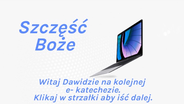 Witaj Dawidzie na kolejnej e- katechezie. Klikaj w strzałki aby iść dalej.