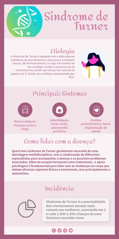 Síndrome de Turner é a anormalidade dos cromossomos sexuais mais comum nas mulheres, ocorrendo em 1 a cada 1.500-2.500 crianças do sexo feminino nascidas-vivas