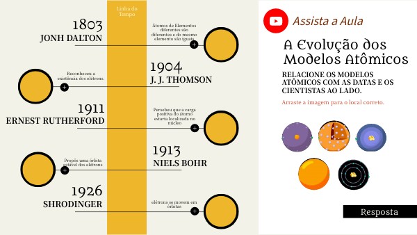 Relacione os modelos atômicos com as datas e os cientistas ao lado.
