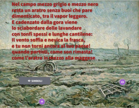 Nel campo mezzo grigio e mezzo nero resta un aratro senza buoi che pare dimenticato, tra il vapor leggero. E cadenzato dalla gora viene lo sciabordare delle lavandare con tonfi spessi e lunghe cantilene: Il vento soffia e nevica la frasca, e tu non torni ancora al tuo paese! quando partisti, come son rimasta! come l’aratro in mezzo alla maggese.