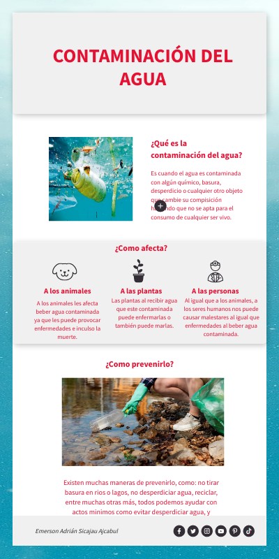 Es cuando el agua es contaminada con algún químico, basura, desperdicio o cualquier otro objeto que cambie su compisición haciendo que no se apta para el consumo de cualquier ser vivo.
