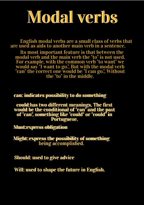 English modal verbs are a small class of verbs that are used as aids to another main verb in a sentence.