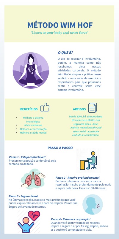 O ato de respirar é involuntário, porém, a maneira como nós respiramos afeta nossas atividades corporais. O método Wim Hof é simples e prático nesse sentido - uma série de exercícios respiratórios para que possamos sentir o controle sobre esse sistema involuntário.