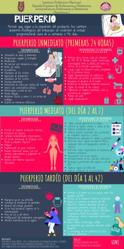 BibliografíaSecretaria de Salud CENETEC. (2015). Intervenciones de enfermería durante el puerperio fisiológico. Guía de Práctica de Enfermería. Recuperado el 23/04/2021 en http://www.cenetec.salud.gob.mx/contenidos/gpc/catalogoMaestroGPC.html