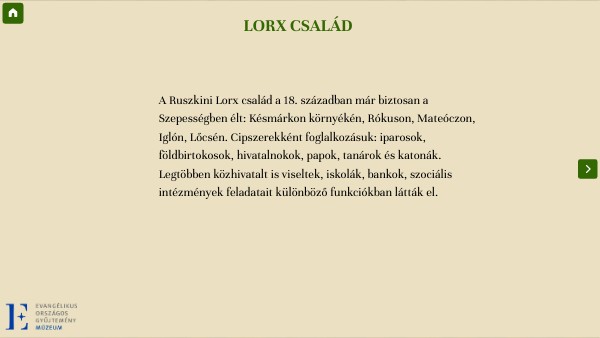 A Ruszkini Lorx család a 18. században már biztosan a Szepességben élt: Késmárkon környékén, Rókuson, Mateóczon, Iglón, Lőcsén. Cipszerekként foglalkozásuk: iparosok, földbirtokosok, hivatalnokok, papok, tanárok és katonák. Legtöbben közhivatalt is viseltek, iskolák, bankok, szociális intézmények feladatait különböző funkciókban látták el.