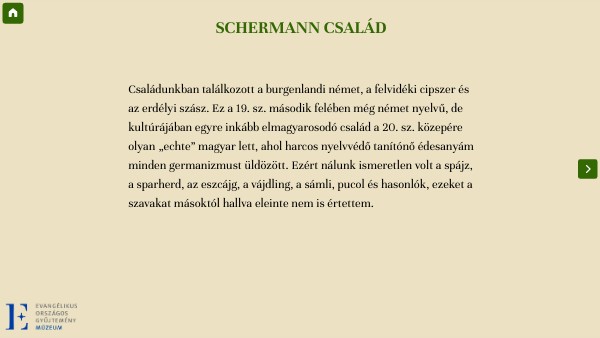 A Schermann-ág Kőszeg és Sopron vidékén élt, sok nemzedéken át a posztós mesterséget űzte, erre utal családnevünk is; a Scher-Mann jelentése posztónyíró. A 19. sz. közepén a kézműves iparosok egyre nehezebben viselték a terjeszkedő gyáripar konkurenciáját, és arra kényszerültek, hogy fiaikat más, többek között értelmiségi pályák felé tereljék. Schermann Samu nagyapámnak a nemzet napszámosaként számon tartott tanítói pálya jutott. A soproni evangélikus tanítóképzőben 1872-ben kapta kántortanítói oklevelét. Négy évi kőszegi tanítóskodás után, az iglói ev. gyülekezet és a gimnázium által meghirdetett állást elnyerve, 1876-tól mint az iskola ének-zene és testnevelés tanára, valamint a templom kántora működött 1924-es nyugalomba vonulásáig. Eközben szervezte és vezette a iskola zenekarát, az iglói dalárdát, alkalmanként közreműködött a város kulturális eseményeinek megrendezésében. 1877-ben feleségül vette a katolikus Várallyi (Podzameczky) Emiliát. Első felesége korai halála után a késmárki Marcsek Annával kötött házasságot. A Marcsek ősök szepesi iparosok, majd hivatalnokok, tanítók, tanárok voltak.