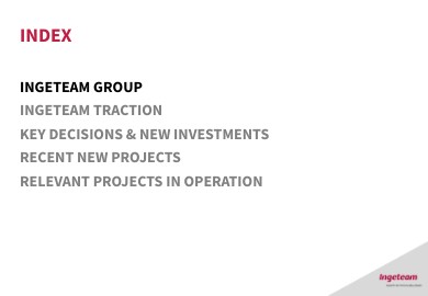 INGETEAM GROUP INGETEAM TRACTION KEY DECISIONS & NEW INVESTMENTS RECENT NEW PROJECTS RELEVANT PROJECTS IN OPERATION