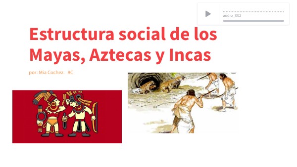 En Mesoamérica se dessarolló la cultura maya. Los mayas se ubicaron en las tierras bajas en el sur de Yucatán, que corresponde en la actualidad a México, Guatemala, Belice y el oeste de Honduras. Los mayas tenian una organización política centrada en ciudades-estados independientes. En cada Aldea había un funcionario llamado batab. Tambien reunian la población para realizar tareas agrícolas, obras publicas y festividades religiosas, y para integrar tropas en caso de guerra. En los centros ceremoniales se levantaban pirámides escalonadas que servían de basamento a los templos. solo en ocasiones las piramides eran huecas y servían como tumbas. En la piramide en Palenque que sirve de base al templo de las inscripciones. en esta pirámide se encuentra el cuerpo de un governante. La sociedad maya se jerarquizaba en cinco grupos: .sacerdotes: Sector mas poderoso y dirigente de la ciudad. .Nobles: Grupo que controlaba el poder político y al que solo se accedia por nacimiento. .Comerciantes: Sector encargado del comercio interno y externo. .Artesanos y campesinos: encargados de crear lo que la nobleza se ponia para vestir y adornar sus viviendas.