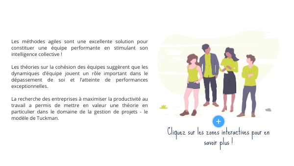 Les méthodes agiles sont une excellente solution pour constituer une équipe performante en stimulant son intelligence collective ! Les théories sur la cohésion des équipes suggèrent que les dynamiques d’équipe jouent un rôle important dans le dépassement de soi et l’atteinte de performances exceptionnelles. La recherche des entreprises à maximiser la productivité au travail a permis de mettre en valeur une théorie en particulier dans le domaine de la gestion de projets - le modèle de Tuckman.