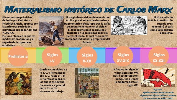 El comunismo primitivo, definido por Karl Marx y Friedrich Engels, aparece con las primeras sociedades primitivas alrededor del año 7.000 A.C. Fue una etapa en la que los medios de producción y el reparto de la riqueza es equitativo.