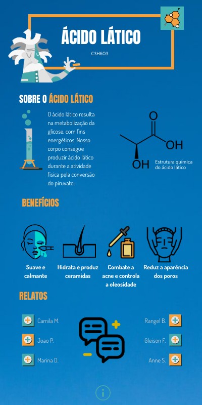 O ácido lático resulta na metabolização da glicose, com fins energéticos. Nosso corpo consegue produzir ácido lático durante a atividade física pela conversão do piruvato.