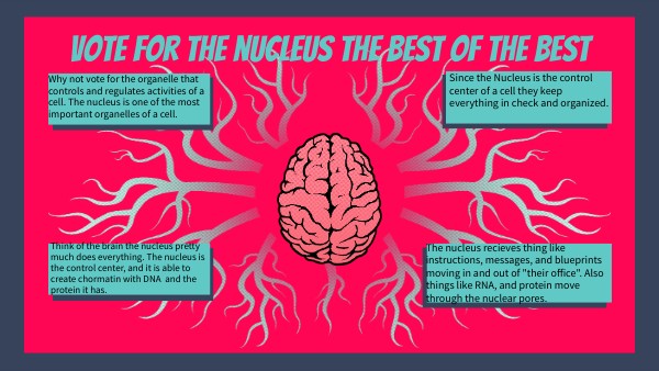 Think of the brain the nucleus pretty much does everything. The nucleus is the control center, and it is able to create chormatin with DNA and the protein it has.