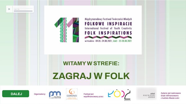 - Każdy gracz/zespół podczas realizacji zadań musi podać swój NICK, który zostanie nadany po zarejestrowaniu się na stronie www.folkoweinspiracje.pl