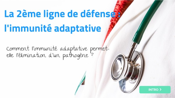 Comme nous l'avons vu précédemment, l'immunité innée est la 1ère réaction mise en oeuvre par notre corps pour se défendre contre les micro-organismes tels que les bactéries ou les virus. Cependant, dans certains cas, cette réaction ne suffit pas. Notre organisme doit également se défendre contre certaines de ses cellules qui ont été modifiées (potentiellement cancéreuses). Une deuxième ligne de défense est alors nécessaire. Cette dernière, plus spécifique du pathogène, existe chez tous les vertébrés.