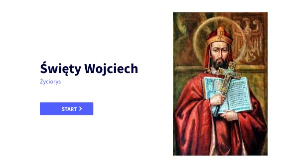 Św. Wojciech, biskup i męczennik, którego Kościół w Polsce uznaje za jednego ze swoich głównych patronów, pochodził z książęcego rodu czeskich Sławnikowiców, spokrewnionego przez Dąbrówkę z dynastią Piastów. Jego krew leży u fundamentów Kościoła i państwa na ziemiach piastowskich. Jako apostoł pogan w swej ostatniej misji dotarł do wybrzeży Bałtyku, gdzie 23 kwietnia 997 roku poniósł śmierć męczeńską. Przy jego grobie spotkali się w 1000 roku cesarz Otton III i książę Bolesław Chrobry, a wydarzenie to przeszło do historii jako Zjazd Gnieźnieński. Już wówczas św. Wojciech - wychowanek szkoły w Magdeburgu, biskup praski, mnich rzymski, apostoł Węgier i Polski, wreszcie męczennik pruski, którego ciało znalazło się w Gnieźnie – urastał do rangi symbolu duchowej jedności tworzącej się wówczas Europy. Wzorem swoich wielkich poprzedników św. Cyryla i św. Metodego łączył duchowe tradycje różnych kultur. Po latach dzieciństwa spędzonego na dworze rodziców w czeskich Libicach, zdobył wykształcenie w Magdeburgu, gdzie przez 10 lat pobierał nauki w jednej z lepszych szkół owych czasów. Tam też otrzymał bierzmowanie, a na cześć ówczesnego arcybiskupa Magdeburga przyjął drugie imię Adalbert. W 981 roku powrócił do Czech, gdzie otrzymał święcenia kapłańskie, a rok później, po śmierci biskupa praskiego Dytmara, objął tamtejsze biskupstwo
