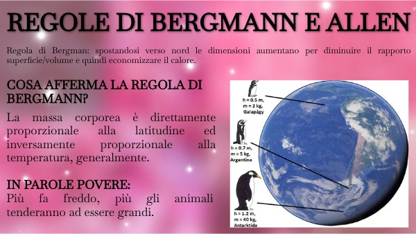 Regola di Bergman: spostandosi verso nord le dimensioni aumentano per diminuire il rapporto superficie/volume e quindi economizzare il calore.