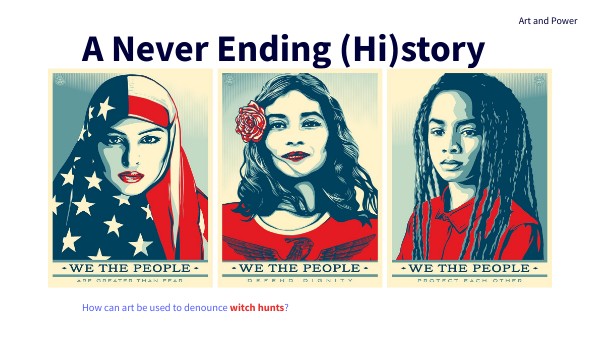 Present the artist and how he uses his art top denounce witch hunt. Ask him to explain his political artwork and the message behind it.