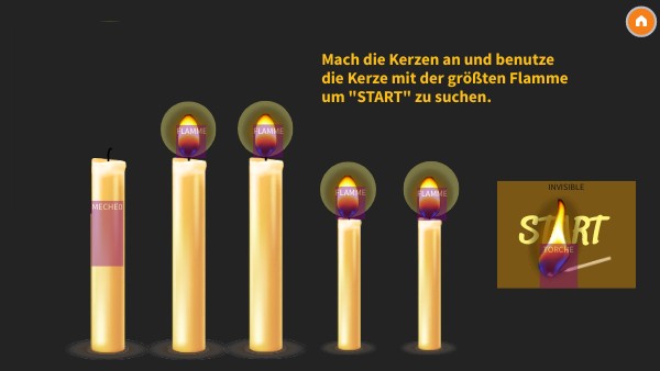 Mach die Kerzen an und benutze die Kerze mit der größten Flamme um "START" zu suchen.