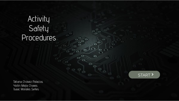 Introduction:After the workshop we will evaluate your knowledge. So, we are going to start with an easy activity, the first and important indication you need to know: It's that we going to select the participants. We just need fifteen of you. The activity will evaluate the three main topics we explain you. safety procedures, hazards and risks, and security protocols and prevention signs. You could see the questions and answers. If the person doesn’t know the answer he could ask for help. Good luck!