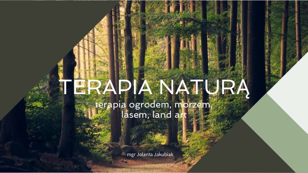 Terapia lasem/ terapia przez obcowanie z przyrodą Śpiew ptaków, szum drzew, spacery po lesie, zbieranie grzybów, owoców leśnych. Używanie wszystkich zmysłów. Dotykanie drzew, słuchanie szumu lasu, wzrokowo pochłanianie kolorów, smakowanie owoców, wdychanie powietrza.