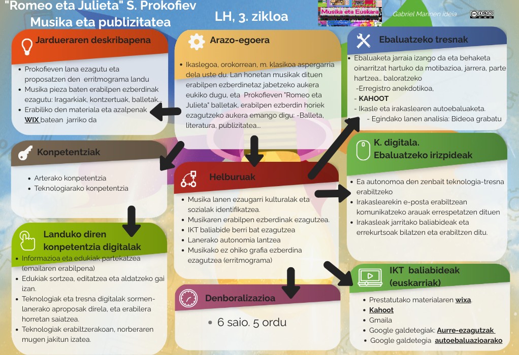 - Ikaslegoa, orokorrean, m. klasikoa aspergarria dela uste du. Lan honetan musikak dituen erabilpen ezberdinetaz jabetzeko aukera eukiko dugu, eta Prokofieven "Romeo eta Julieta" balletak, erabilpen ezberdin horiek ezagutzeko aukera emango digu: -Balleta, literatura, publizitatea...