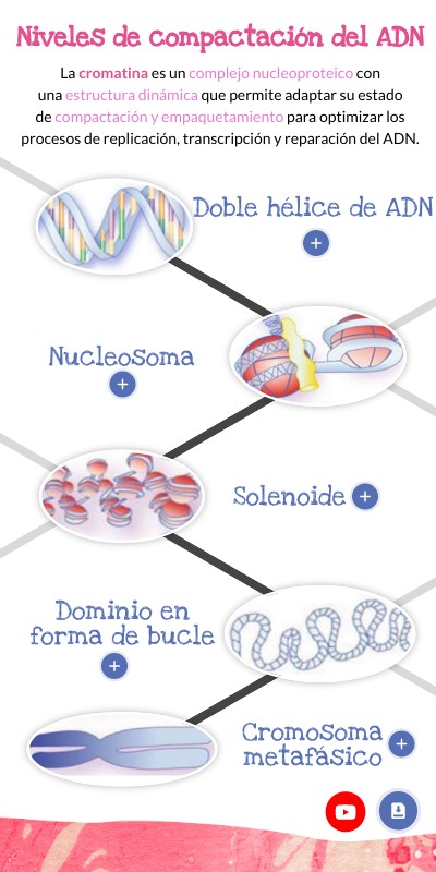 La cromatina es un complejo nucleoproteico con una estructura dinámica que permite adaptar su estado de compactación y empaquetamiento para optimizar los procesos de replicación, transcripción y reparación del ADN.
