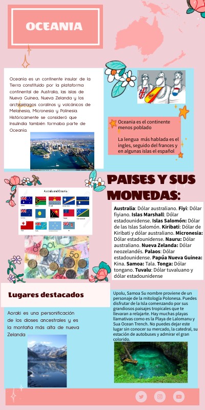 Oceania es el continente menos poblado La lengua más hablada es el ingles, seguido del frances y en algunas islas el español