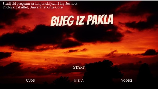 Nalaziš se u paklu. Moraš uspješno proći kroz predvorje i devet krugova kako bi se izbavio/la i na kraju ponovo mogao/la da vidiš zvijezde. Odgovarajući tačno na pitanja, na kraju svakog kruga doći ćeš do jednog broja koji čini sastavni dio koda od deset cifara koji ti je potreban da otključaš vrata i izbaviš se. Na kraju svake etape možeš kliknuti na olovku u gornjem lijevom uglu i ukucati dobijeni broj u notes da ne bi morao/la da pamtiš.