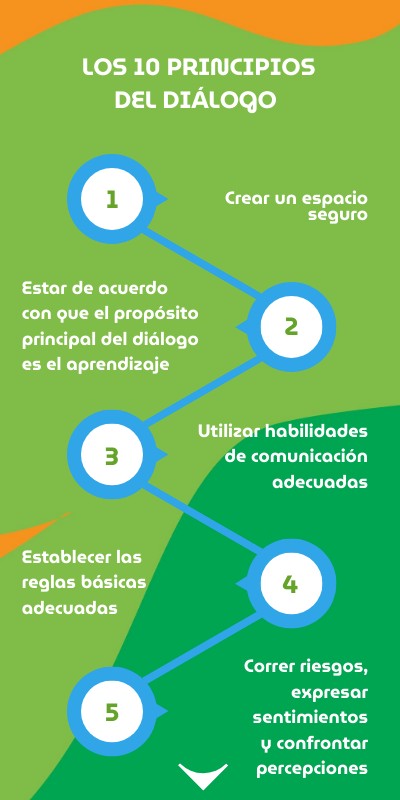 Los y las participantes deben acercarse al diálogo con la intención y la actitud de aprender sobre los y las demás, así como sobre sus percepciones sobre el tema.