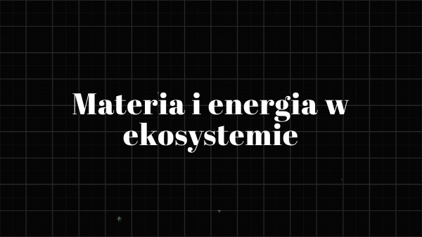 W przeciwieństwie do materii energia nie krąży w ekosystemie, ale przez niego przepływa. Podczas fotosyntezy rośliny wykorzystują energię słoneczną do wytwarzania związków organicznych. W ten sposób energia słoneczna jest przekształcana w energię wiązań chemicznych. Większość tej energi zostaje zużyta do rozwoju i wzrostu roślin oraz rozporasza się w postaci ciepła. Tyko niewielka część pozostaje w związkach budujących ciała roślin i może być wykorzystana przez konsmentów. Niewielka ilość pobranej enrgii jest wykorzystywana przez zwierzęta głównie do procesów takich jak poruszanie się lub jest rozpraszana.