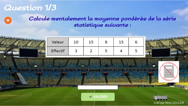 Calcule mentalement la moyenne pondérée de la série statistique suivante :