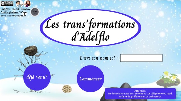 je suis la fée Adelflo. Regarde! L'hiver s'achève... Aide-moi à réveiller 4 éléments de cette nature endormie.