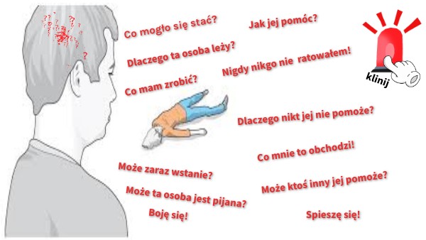 Cieszę się, że chcesz pomóc! Osoba leżąca to kobieta w podeszłym wieku. Jesteś jedyną osobą na miejscu. Musisz jak najszybciej podjąć akcję ratowniczą. Przed Tobą kilka zadań, przez które musisz przejść, aby uratować życie poszkodowanej. Po każdym dobrze rozwiązanym zadaniu, otrzymasz cyfrę. Ciąg liczb pozwoli Ci otworzyć apteczkę pierwszej pomocy. Zapamiętaj lub zapisz sobie te numery według kolejności!