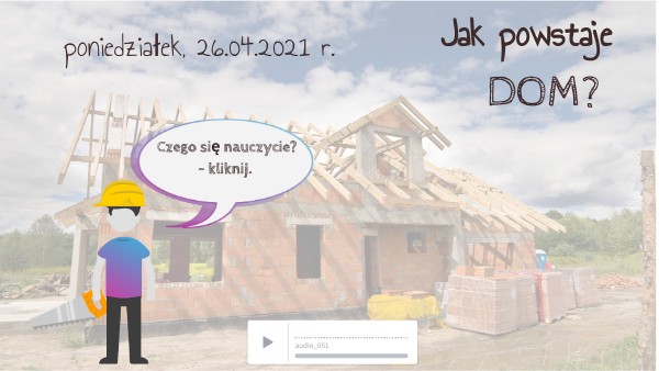 Lekcja data Cel : Wiem , jak powstaje dom.