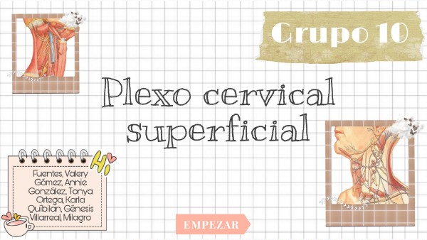 El plexo cervical superficial es responsable de la inervación sensitiva de la cara posterior de la cabeza en este caso complementa la función del nervio trigémino, del cuello y de los músculos de esta región .
