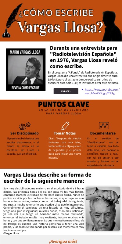 Infografía sobre la manera de escribir de Mario Vargas Llosa.