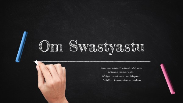 Om, Saraswati namostubhyam Warade kamarupini Widya rambham karishyami Siddhir bhawantume sadam