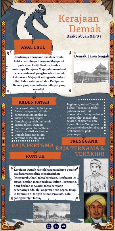 Pada awal tahun 1500 Raden Patah melepaskan diri dari kekuasaan Majapahit. Ia adalah seorang bupati Demak yang telah memeluk agama Islam. Dengan bantuan para ulama, Raden Patah mendirikan Kerajaan Demak, kerajaan Islam pertama di Pulau Jawa.