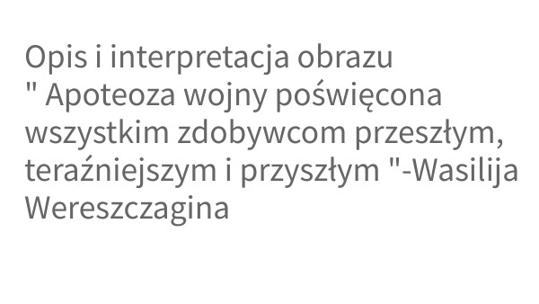 Opis i interpretacja obrazu " Apoteoza wojny poświęcona wszystkim zdobywcom przeszłym, teraźniejszym i przyszłym "-Wasilija Wereszczagina