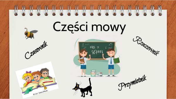 Powtórzenie wiadomości o rzeczowniku, czasowniku i przymiotniku.