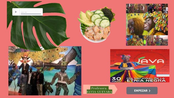 1. Confección de murales en casa acerca de los bailes, vestuario,comida, ceremonias, etc 2. Baile en pareja de alguna danza que le guste. 3. Confección de atuendos, gorros, artesanías o otros elementos de la cultura afro. 4. Confeccionar imagen de pareja negra con sus vestidos de hombre y mujer. pueden utilizar retazos de telas, papel de construcción, crespón, o foami pegadas en cartoncillo. 5. Vestirse con indumentaria de la Etnia y gravar su video haciendo una alocución de los grupos negros que llegaron a Panamá.