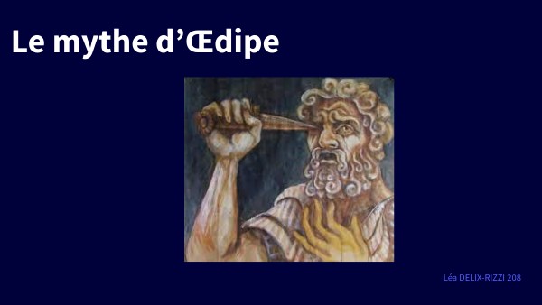 Le mythe d'Oedipe relève donc du histoire rocambolesque entre deux parents et leur fils, cela mélange inceste et parricide. Ce mythe a depuis été repris dans différentes oeuvres comme par exemple "La machine infernale" de Jean Cocteau pour la littérature ou d'autres représentations en peinture. Le complexe d'Oedipe a fait son apparition avec Freud et la psychanalyse.