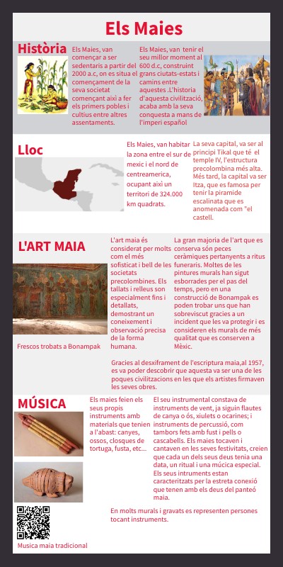 Els maies feien els seus propis instruments amb materials que tenien a l'abast: canyes, ossos, closques de tortuga, fusta, etc...