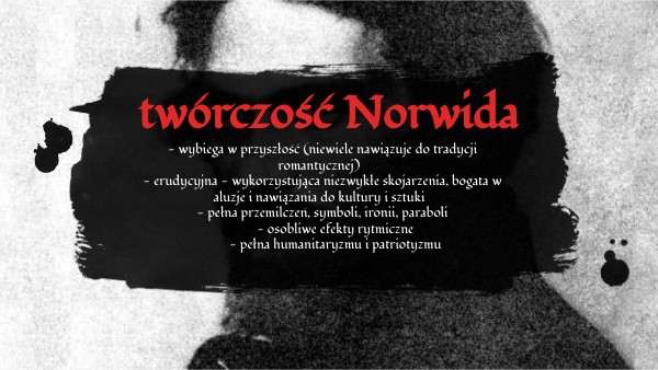 - wybiega w przyszłość (niewiele nawiązuje do tradycji romantycznej) - erudycyjna - wykorzystująca niezwykłe skojarzenia, bogata w aluzje i nawiązania do kultury i sztuki - pełna przemilczeń, symboli, ironii, paraboli - osobliwe efekty rytmiczne - pełna humanitaryzmu i patriotyzmu
